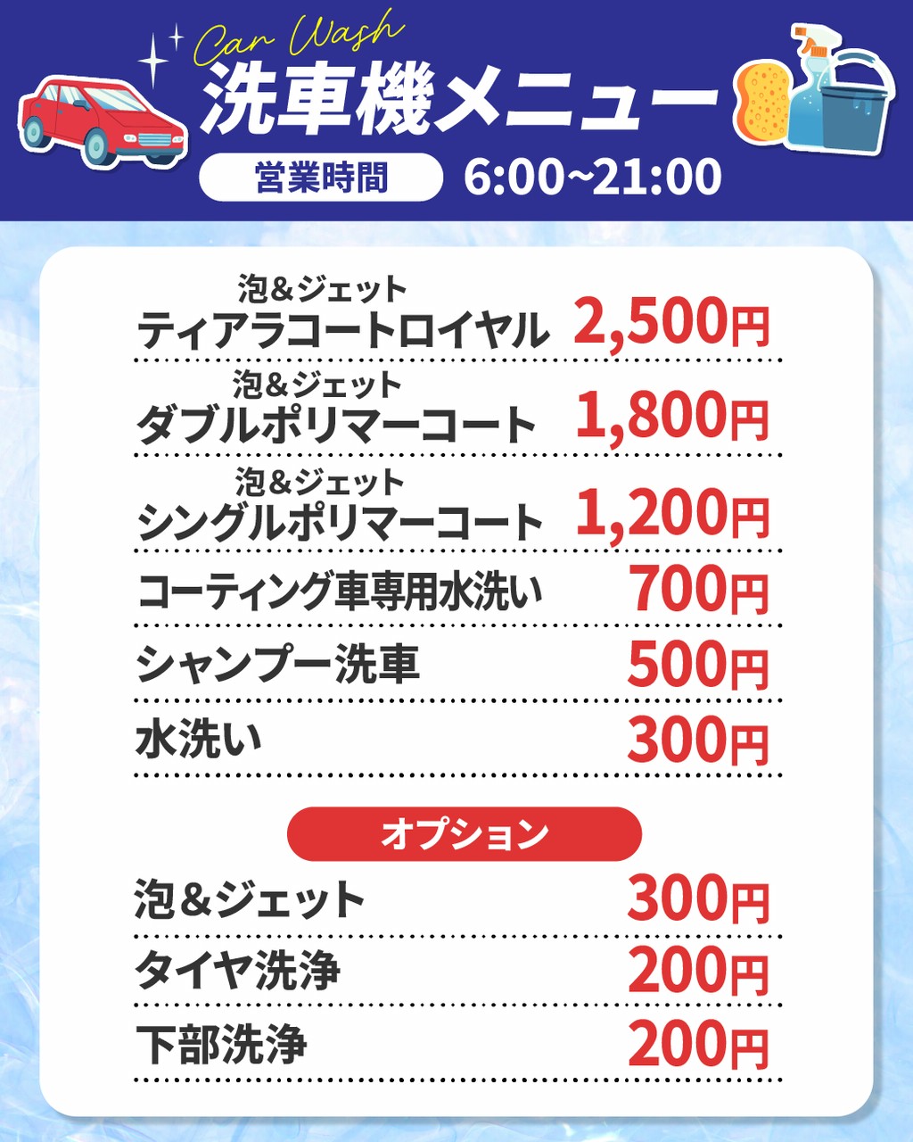 洗車メニュー
