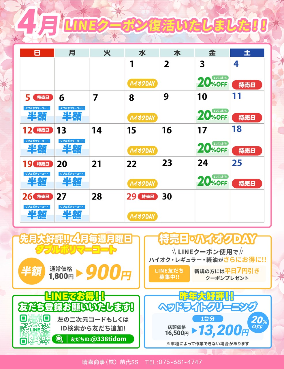 当スタンド(サービスステーション)の4月イベントキャンペーンをお知らせ致します。